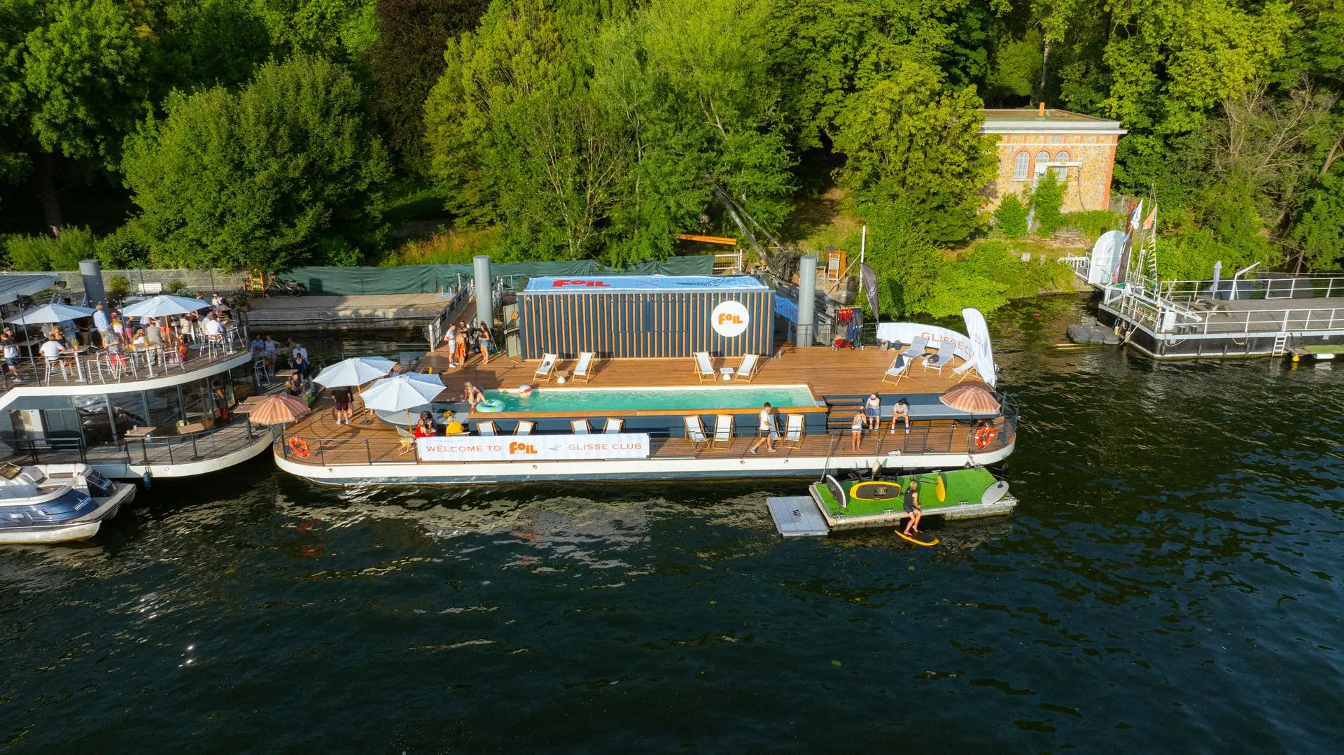 Installée sur la Seine, entre glisse, innovation et lifestyle urbain, la base propose une expérience inédite autour des sports nautiques électriques et bien sûr de l'incontournable eFoil.